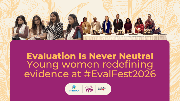 #EvalFest2026 in New Delhi for evaluation in Asia contexts – a biennial conference convened by the Evaluation Community of India and EvalYouth India to explore monitoring and evaluation in complex, evolving contexts provided an excellent opportunity to share the experiences of young women who have put World YWCA’s Feminist Consultation Methodology into action. This year’s theme, “Evaluation in complex and evolving contexts: Harmonising youth, innovation, and impact,” offered the perfect backdrop to centre young women’s authority over evidence. We questioned the idea of neutral data and named how the politics of research decide who holds power, whose stories are heard and who is relegated to the footnotes of their own stories.