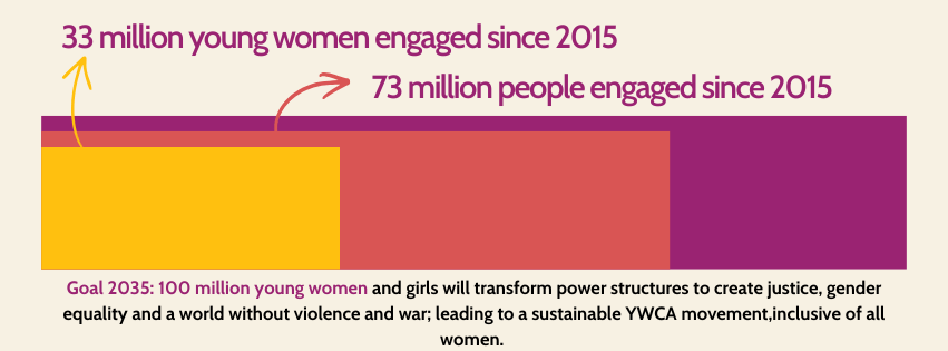 We are now halfway to Goal 2035. Since 2015, the YWCA movement has engaged more than 73 million people globally, including over 33 million young women.